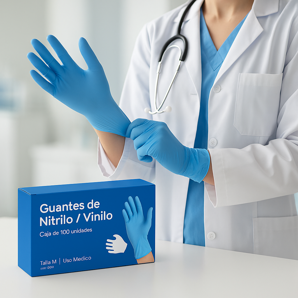 Protege tus manos con los guantes de examen de nitrilo/vinilo de alta calidad. Libres de látex, hipoalergénicos y extra resistentes, diseñados para uso médico, clínico e industrial. Cada caja incluye 100 unidades con certificaciones CE e ISO, garantizando seguridad y confort en cada uso.